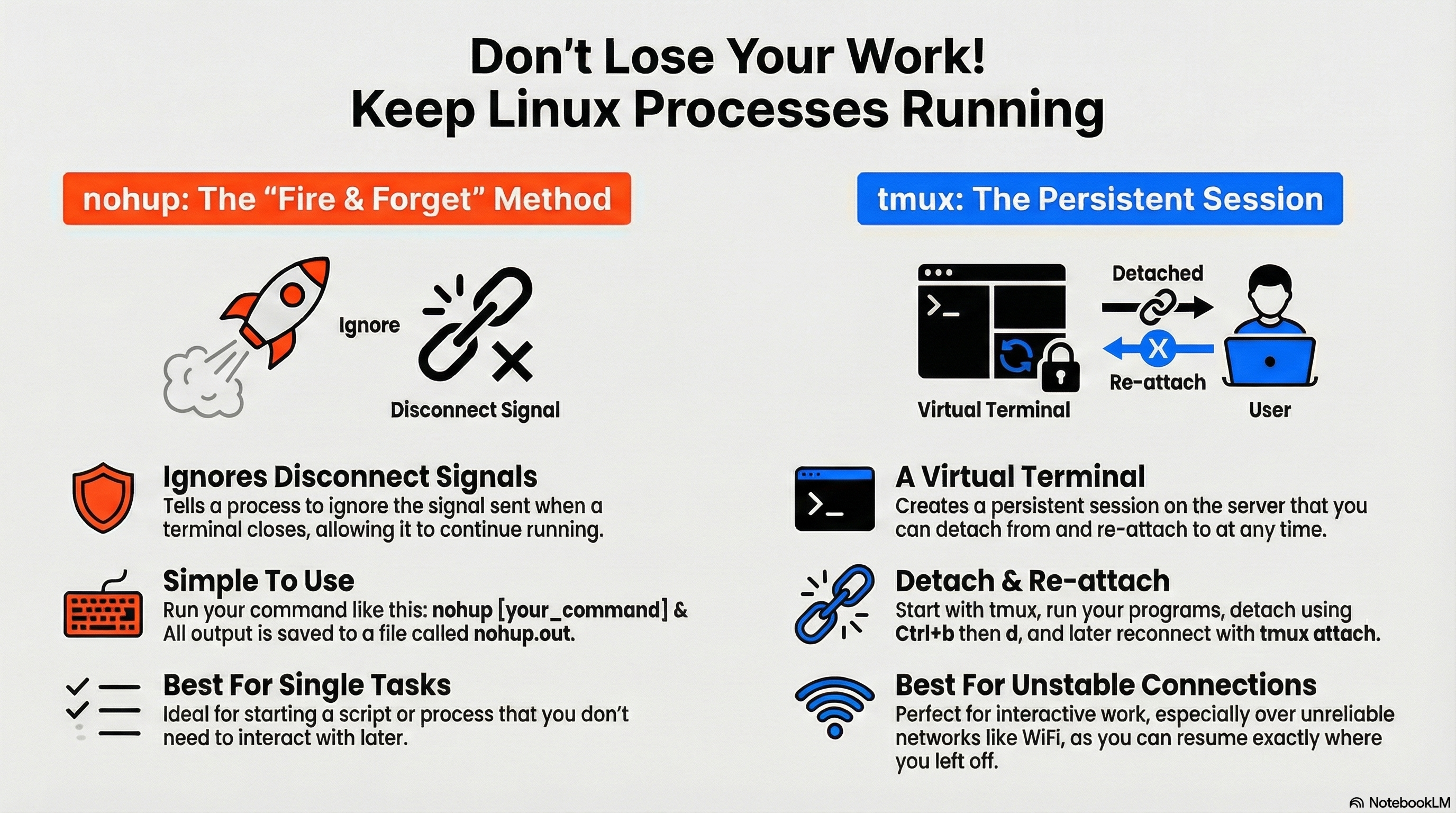 테스트 용이나 단일성의 작업인 경우엔 nohup가 낫다.