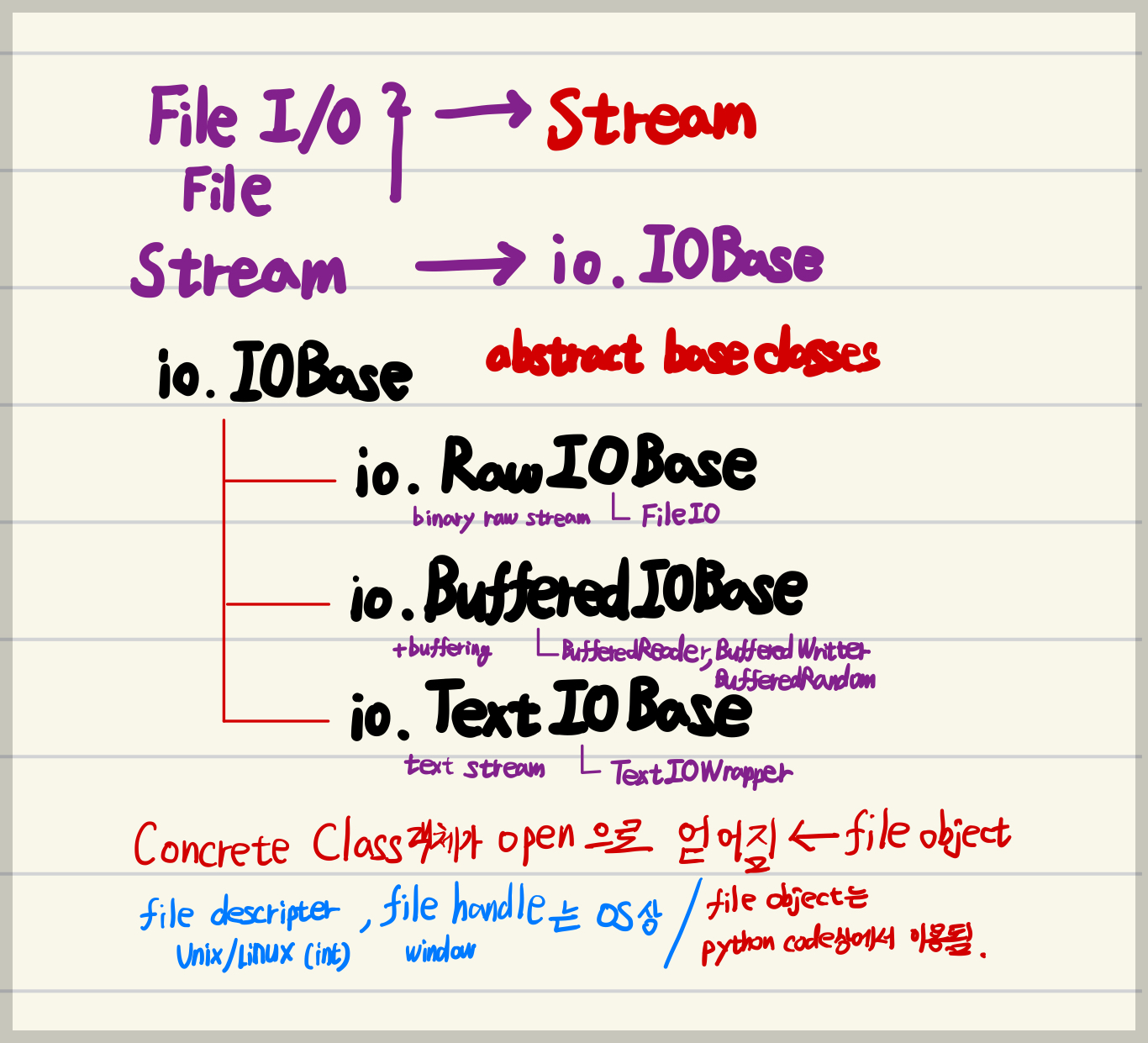 Python 에서 file을 처리하기 위해선 다른 프로그래밍 언어와 마찬가지로 file에 대한 접근이 가능한 object를 얻어와야함.이같은 object는 file object, file handler, file descriptor 등의 여러 이름으로 불리며,P