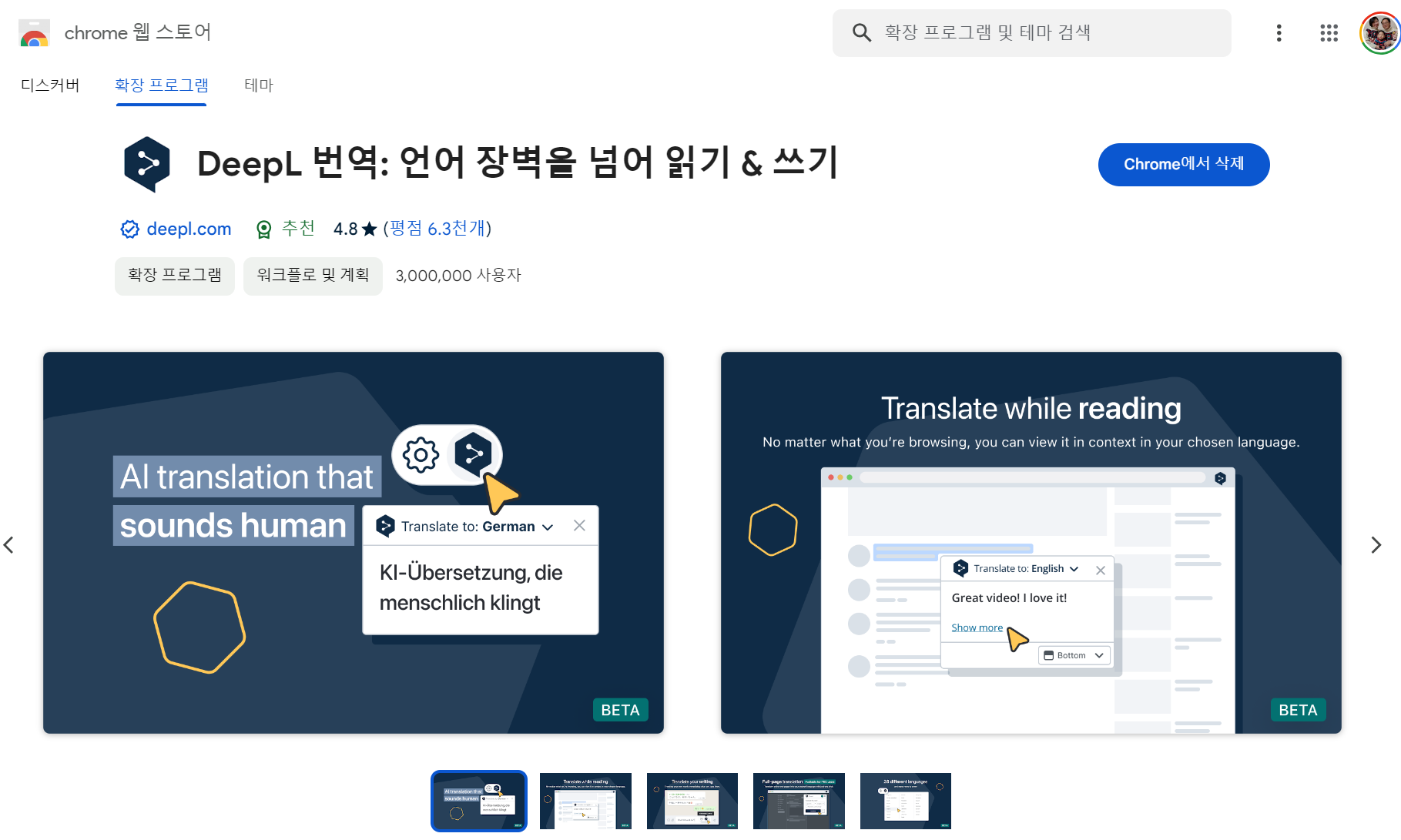 사용해본 번역 프로그램 중에서는 가장 좋은 수준인 거 같다.