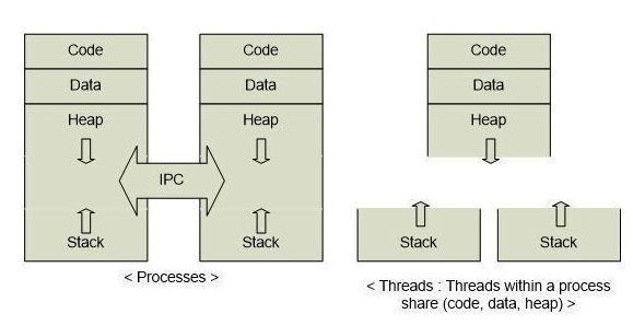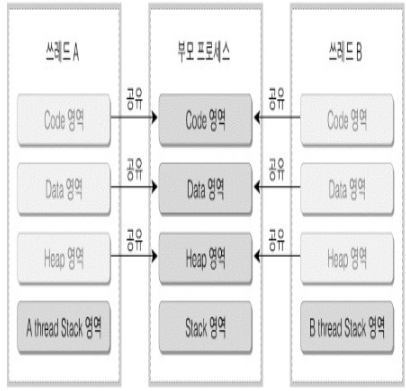 - 한 Process 내에 존재하는 Threads(같은 process에 속하는)는