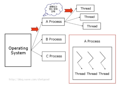 - Thread : Process 내에서 별도의 가장 작은 execution unit을 구성-Process 내부의 execution unit!
