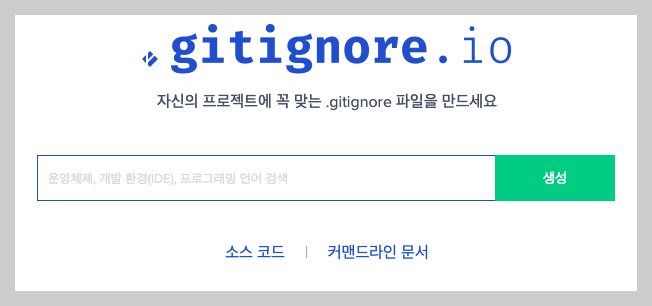 다음의 URL로 가서 해당 프로젝특의 개발 언어나 환경 등을 기재하면 자동으로 .gitignore파일을 만들어줌.
