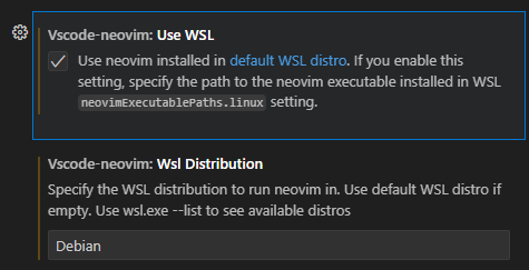 Neovim 확장의 설정을 열고 맨 아래의 다음을 본인이 사용하는 wsl로 설정하면 된다.