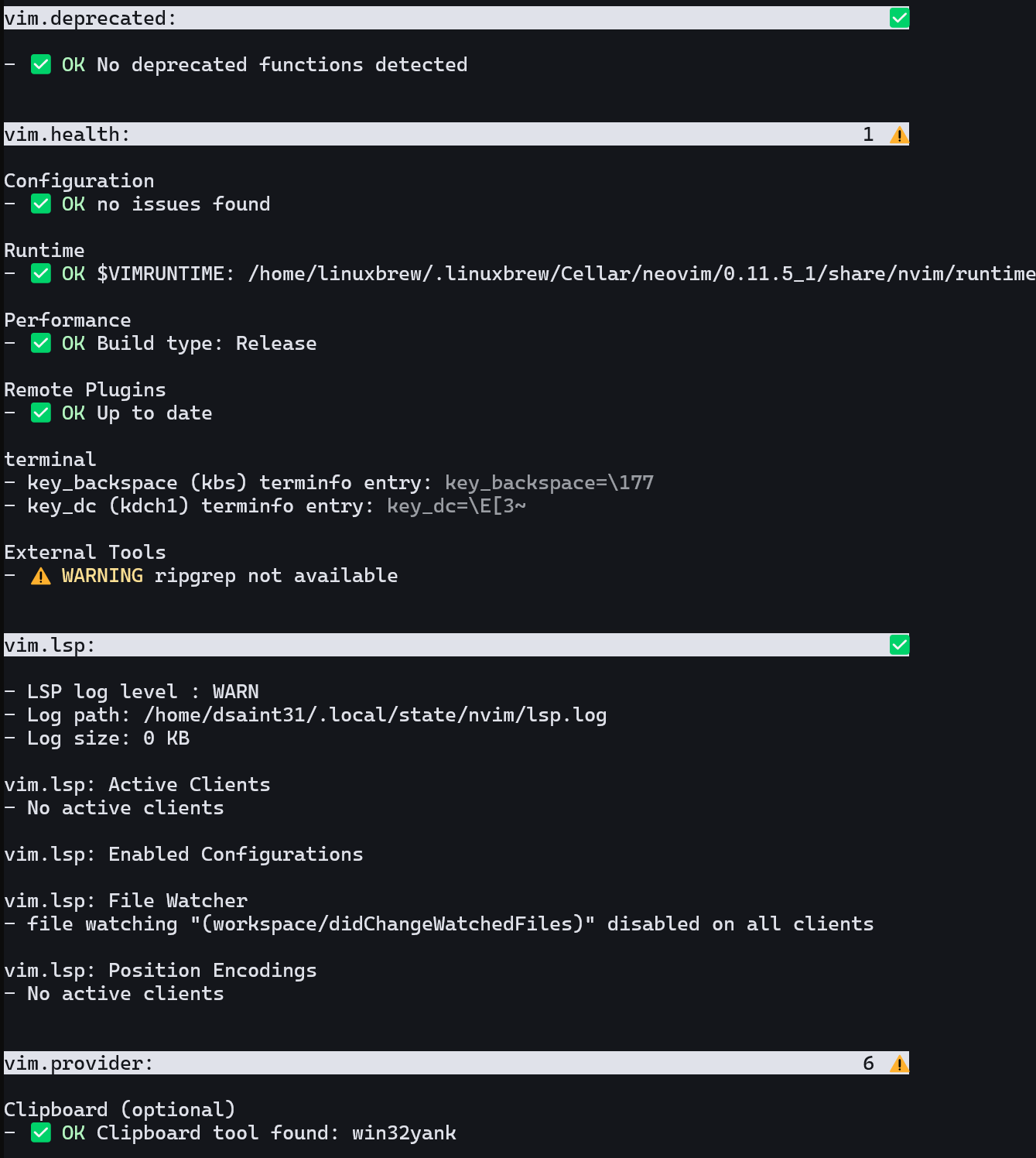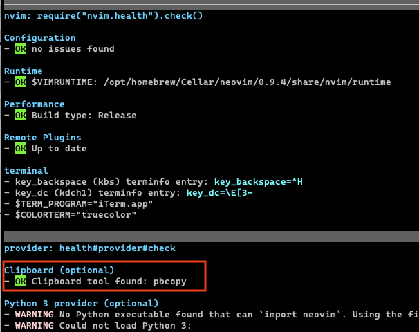 3. neovim에서 :checkhealth로 다음을 확인할 것:
