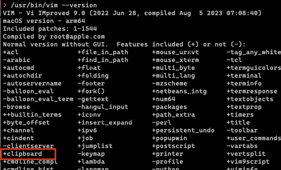 이는 vim의 경우, vim --version (또는 명령어 모드에서 :version 입력하고 엔터)을 통해 +clipboard 라는 표시가 되어있는지로 확인 가능하다.