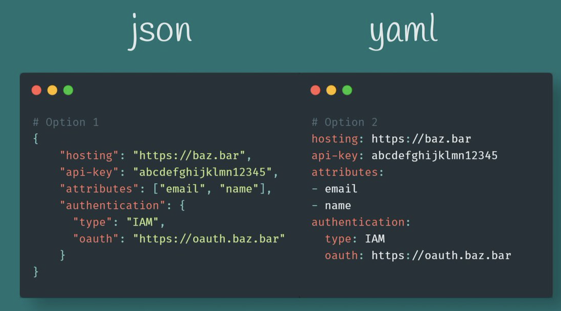 (YAML은 JSON의 superset이라고도 볼 수 있음: 더 복잡하다는 의미이기도 함)