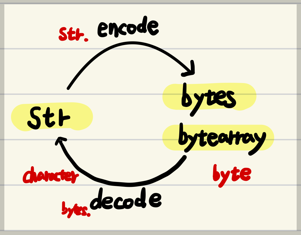 해당 encoding 방식에 따라 동일한 str 객체라도 다른 bytes 객체로 변환된다.