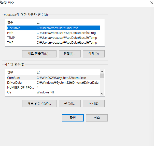 여기서 환경변수를 클릭하면 환경변수를 추가 및 편집 가능함.