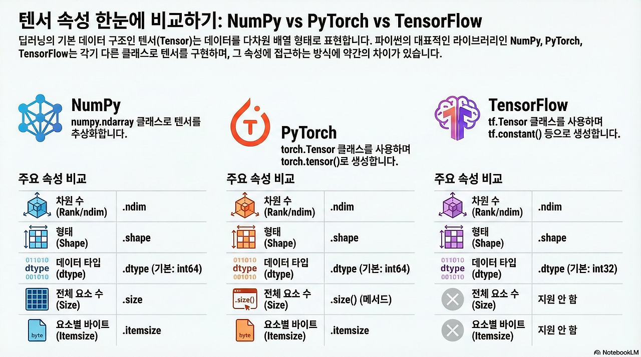 # print(tensor.itemsize) # 지원되지 않음 → AttributeError