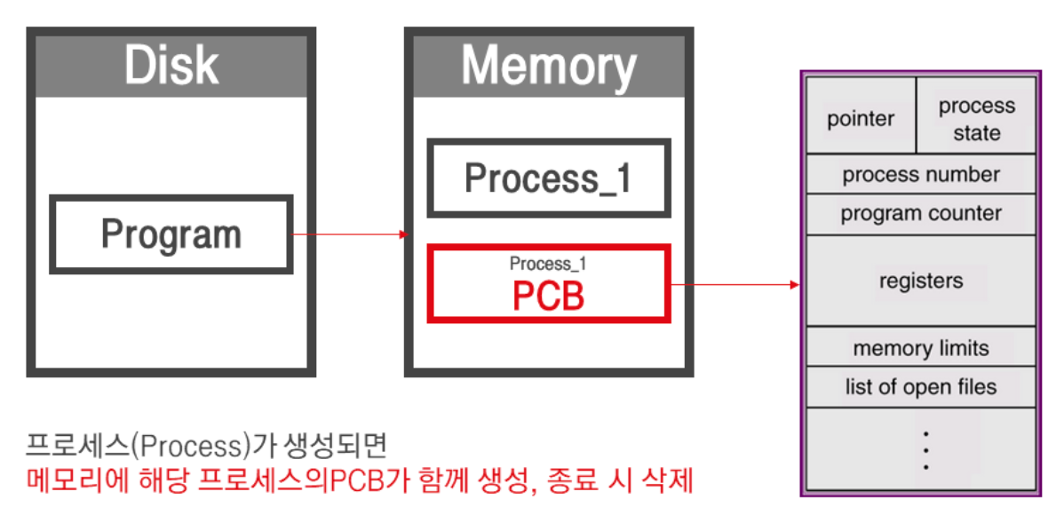 (PCB는 main memory에서 OS의 kernel에 할당된 영역에 존재함.)