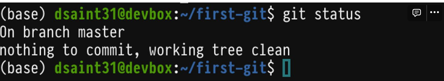 git status수행시 다음과 같이 nothing to commit, working tree clean 메시지를 볼 수 있음.