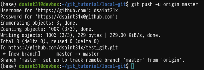 이후로는 git push만 해주어도 이미 local repository의 branch와 origin의 master branch가 연결되었으므로 업로드를 통한 동기화가 수행됨.