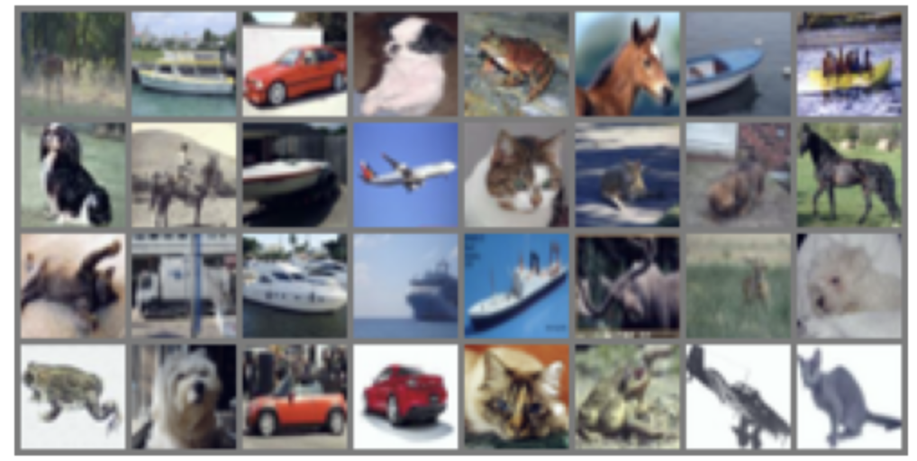 CIFAR-10은 10개의 클래스로 구성되며, 각 클래스는 6,000개 이미지를 가짐.