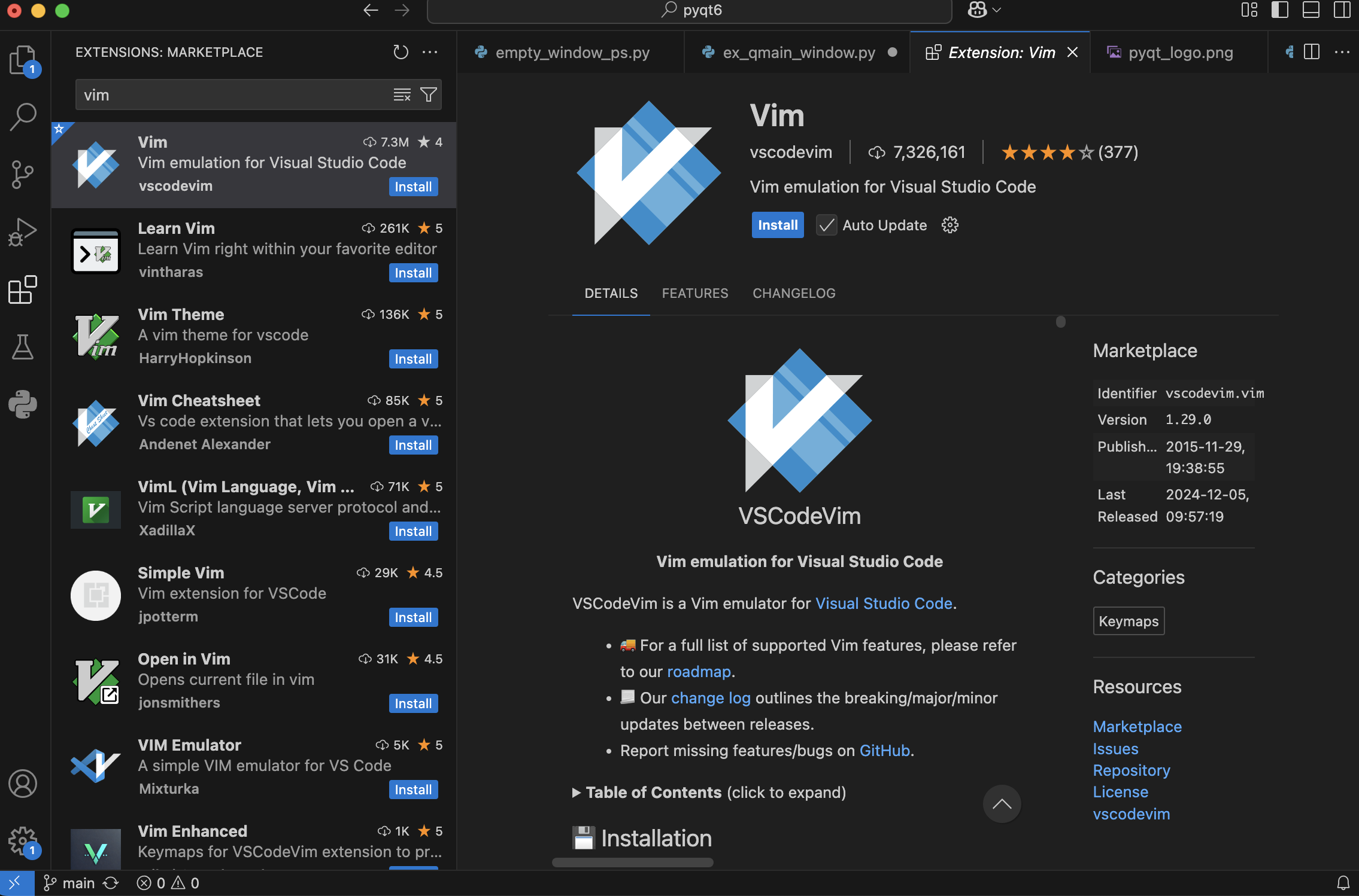 Primary Side Bar 에서 extension 뷰가 나오도록 한 후 상단의 검색창에서 vim으로 검색하면 보통 가장 상단에 나옴