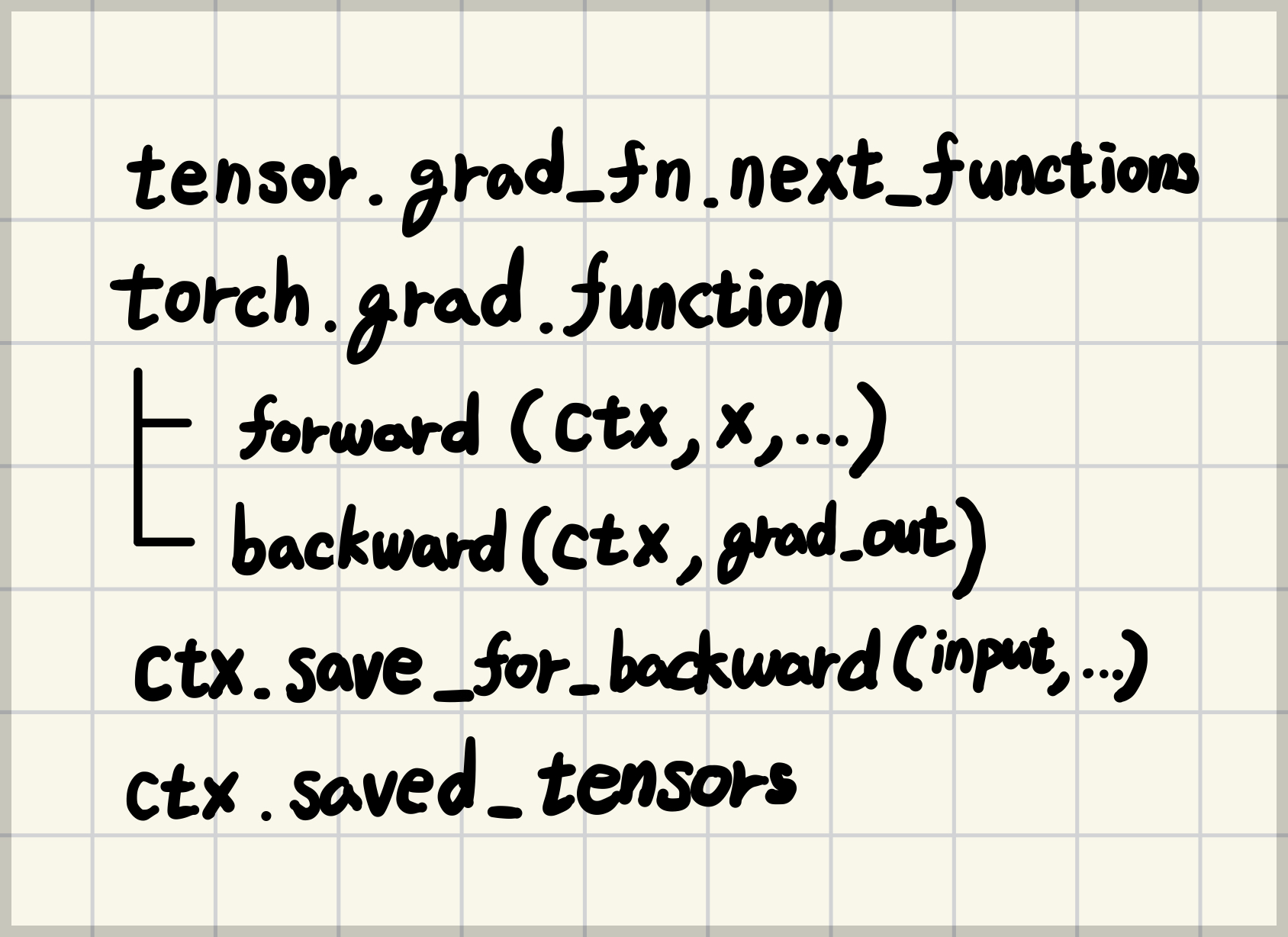 torch.autograd.Function상속 시 next_functions attribute의 자동 포함.- User가 명시적으로 next_functions 구현 불필요.