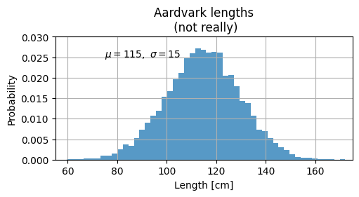 ax.text(75, .025, r'$\mu=115,\ \sigma=15$')