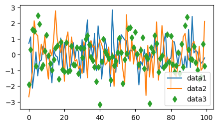 ax.plot(X,Y2,marker='d',markersize=2, label='data2')