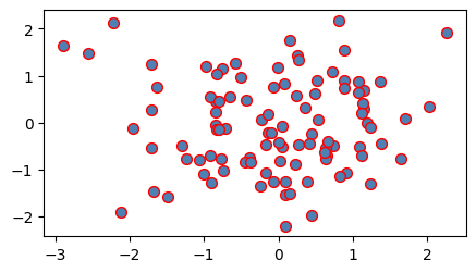 ax.scatter(data1, data2, s=50, facecolor=(0.3,0.5,0.7), edgecolor='r')
