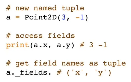 collections모듈에서 제공하는 팩토리 함수로, - 이름이 있는 필드를 가진