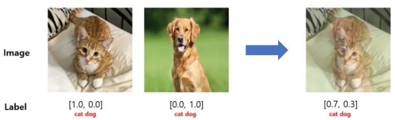 이때 레이블도 두 이미지의 비율에 맞게 혼합됨: soft labeling.