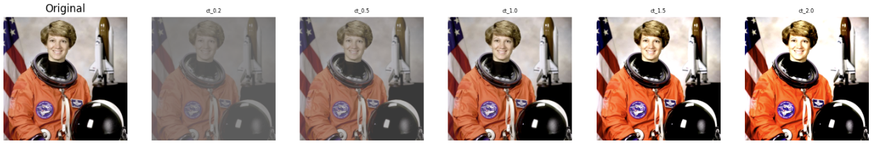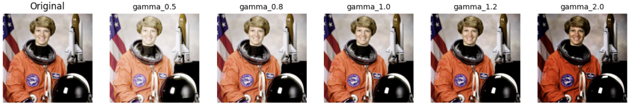 inpt(Tensor): 입력 이미지.gamma(float): 감마 값 (0 보다는 커야함).>1: 이미지가 어두워짐 (낮은 값의 범위가 보다 커지고, 높은 값의 범위는 줄어듬).<1: 이미지가 밝아짐 (낮은 값의 범위가 줄어들고, 높은 값의 범위가 증가).1: 변화 없음.