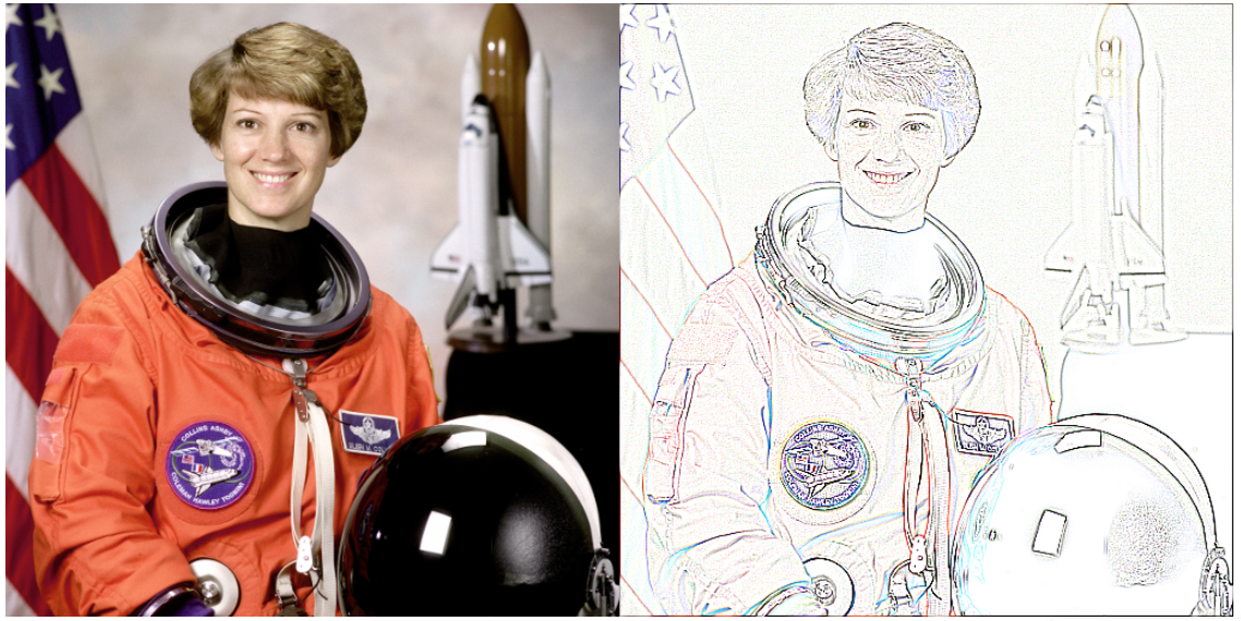 가장자리 검출 후 배경이 흰색이 되고 윤곽이 어두워지는 스타일로 변환.