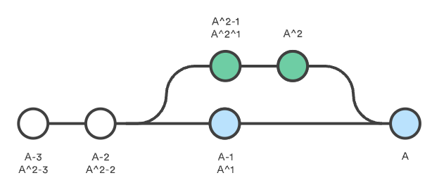 ^이 필요한 부분임. HEAD^2는 merge 명령어에서 인자로 넘겨진 브랜치에 존재하는 직전 commit을 가리킴.- merge가 이루어진 history에서 주로 이용됨.