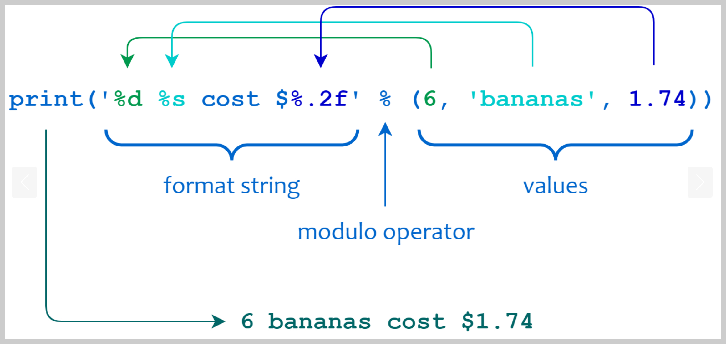 오늘날에는 str의 .format() 메서드나 f-string이 보다 권장됨.