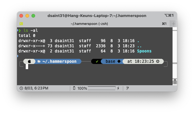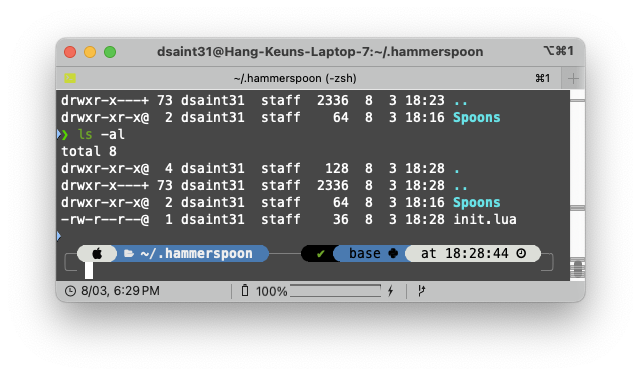 설치가 다 되고 나면 다음과 같이 home 디렉토리(~/)에 .hammerspoon 디렉토리가 만들어짐.