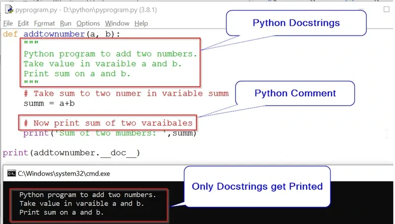 - 함수, 클래스, 모듈의 설명을 작성할 수 있는 Python 고유의 문법임