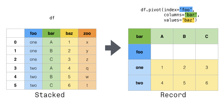 1. pivot 이란?Pandas에서 pivot은 데이터의 모양(shape)을 바꾸는 기능 을 가리킴: reshaping특정 column의 값들을 row 인덱스(index)로,또 다른 column의 값들을 열(columns)로지정하는 테이블을 만들고,해당 조합(