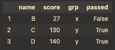 df[df["score"]>=20] # 'score'>=20 조건 만족 row 필터링 **