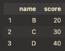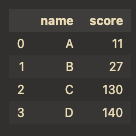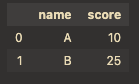 df[["name", "score"]] # 'name','score' column을 DataFrame으로 반환