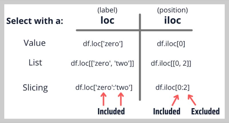 loc[r1:r2, c1:c2](끝 포함, inclusive)iloc[i1:i2, j1:j2](끝 제외, exclusive)