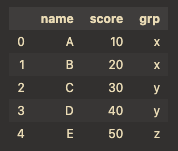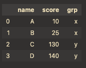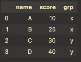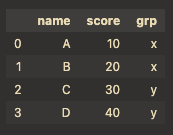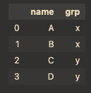 "grp": ["x", "x", "y", "y"], # column 라벨 'grp'