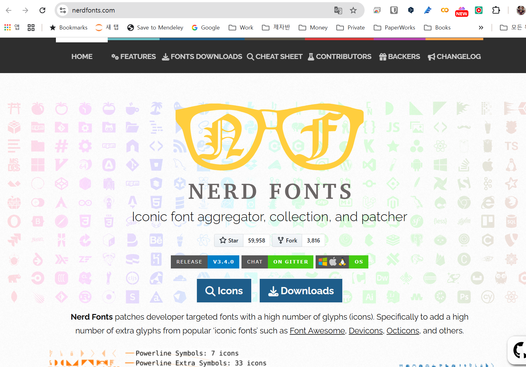Nerd Fonts 를 설치해야 프롬프트 엔진을 제대로 사용가능함.