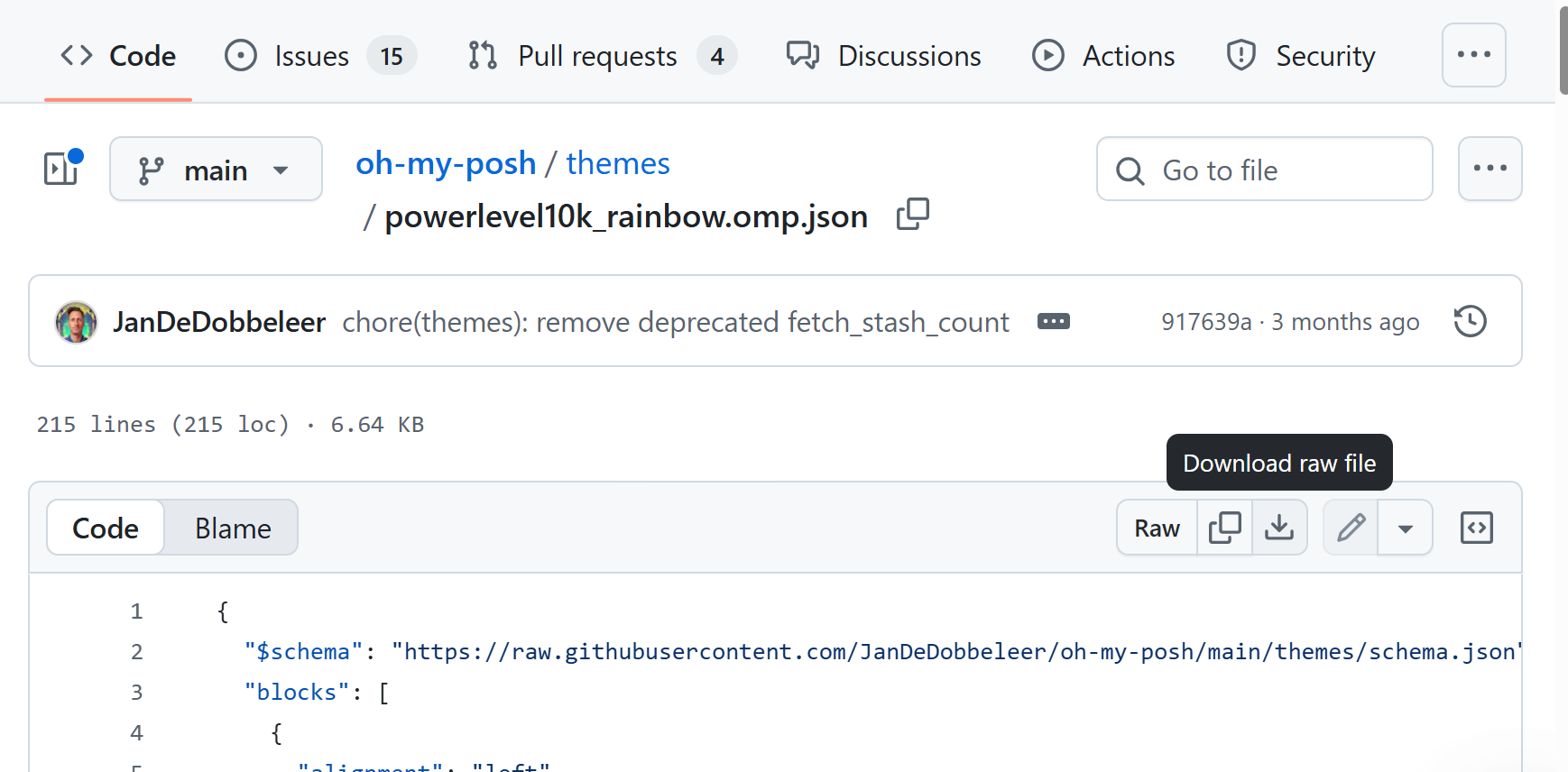 다음의 oh-my-posh url 에서 사용하고자 하는 theme의 json파일을 다운로드한다.