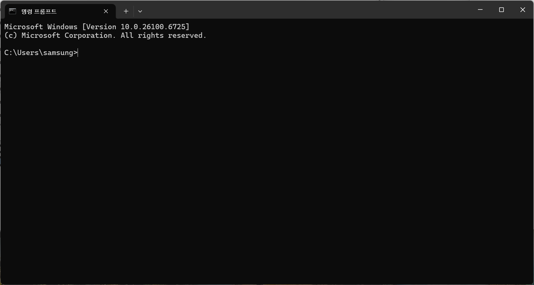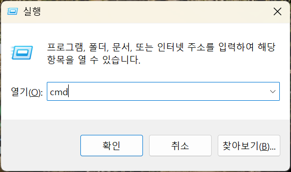 CMD 를 실행: 윈도우키+r 을 누르고 cmd 입력하고 실행.