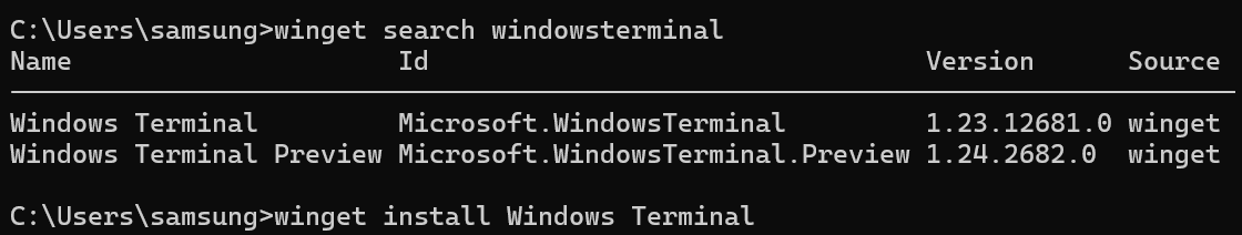 cmd 를 직접 사용하는 것도 나쁘지 않으나, Windows Terminal을 설치하여 사용하는게 좋음.