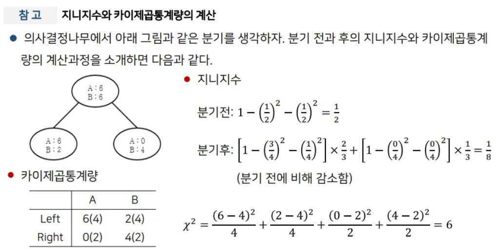 - 분류용 순도 척도: Gini, Entropy.