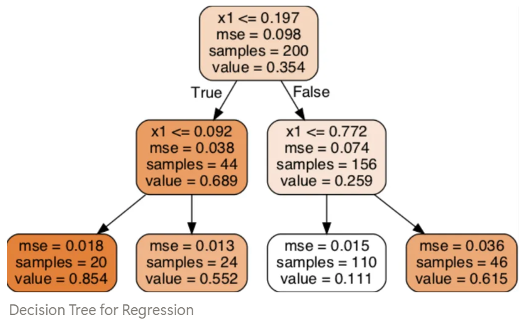 - 분할 기준: 단일 feature $k$와 해당 feature를 2개의 자식노드로 나눌 threshold $t_k$.