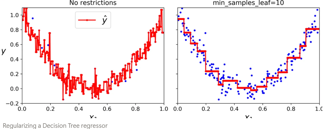 Decision Tree는 Non-parameteric model이기 때문에, 훈련 전에 parameters의 수가 미리 결정되어있지 않음.