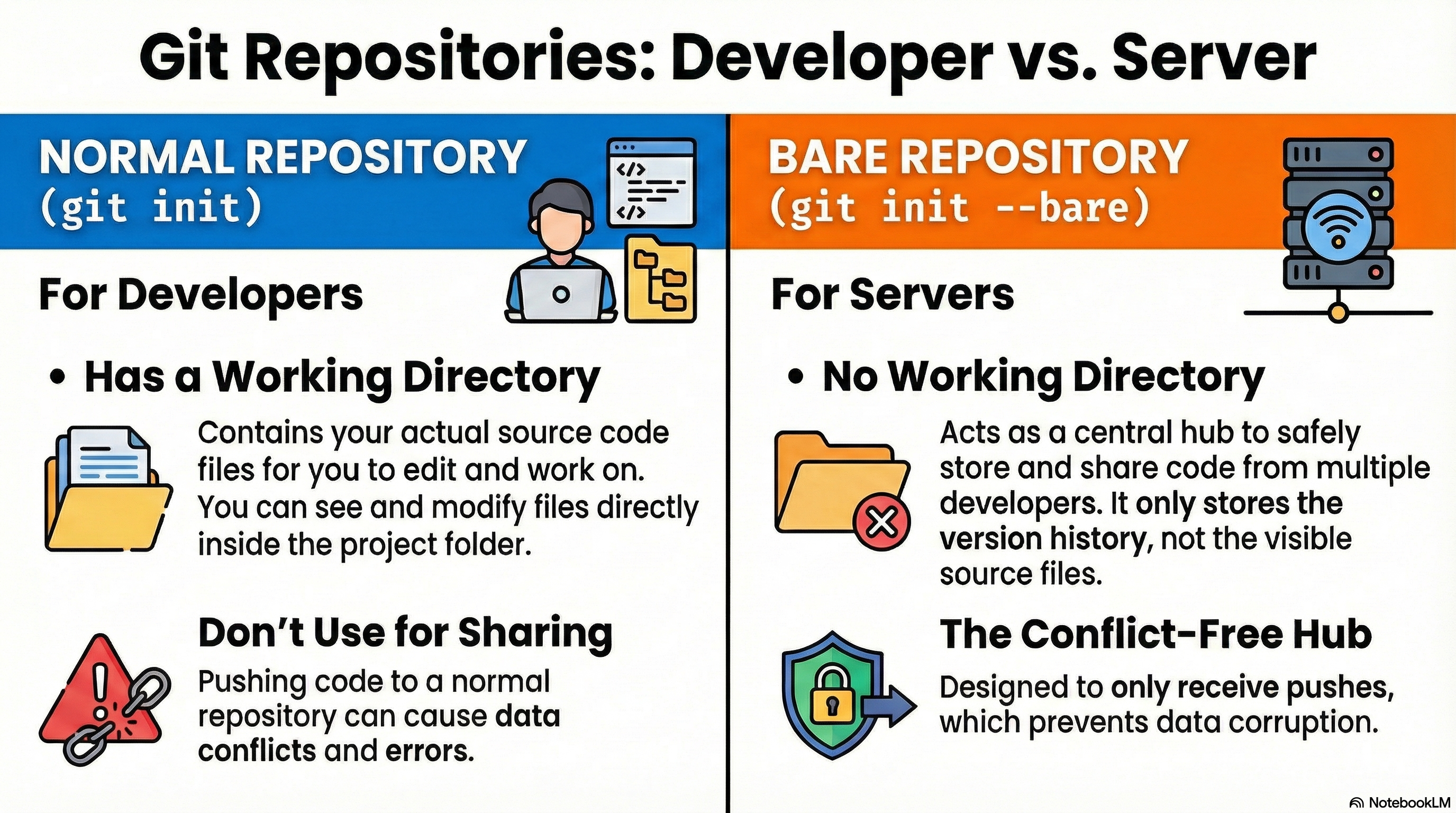 만약 일반 repository를 서버로 사용할 경우, 다음과 같은 문제가 발생할 수 있음