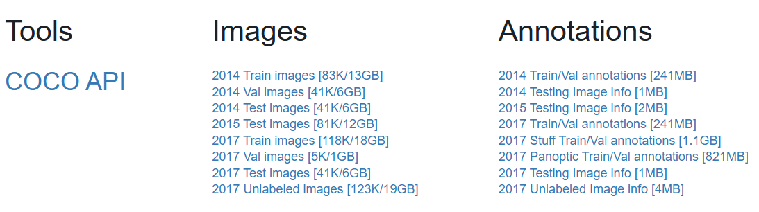 위의 scripts 실행 이후 다음의 디렉토리 구조를 가지며, pycocotools.COCO 등의 API를 사용 가능함.