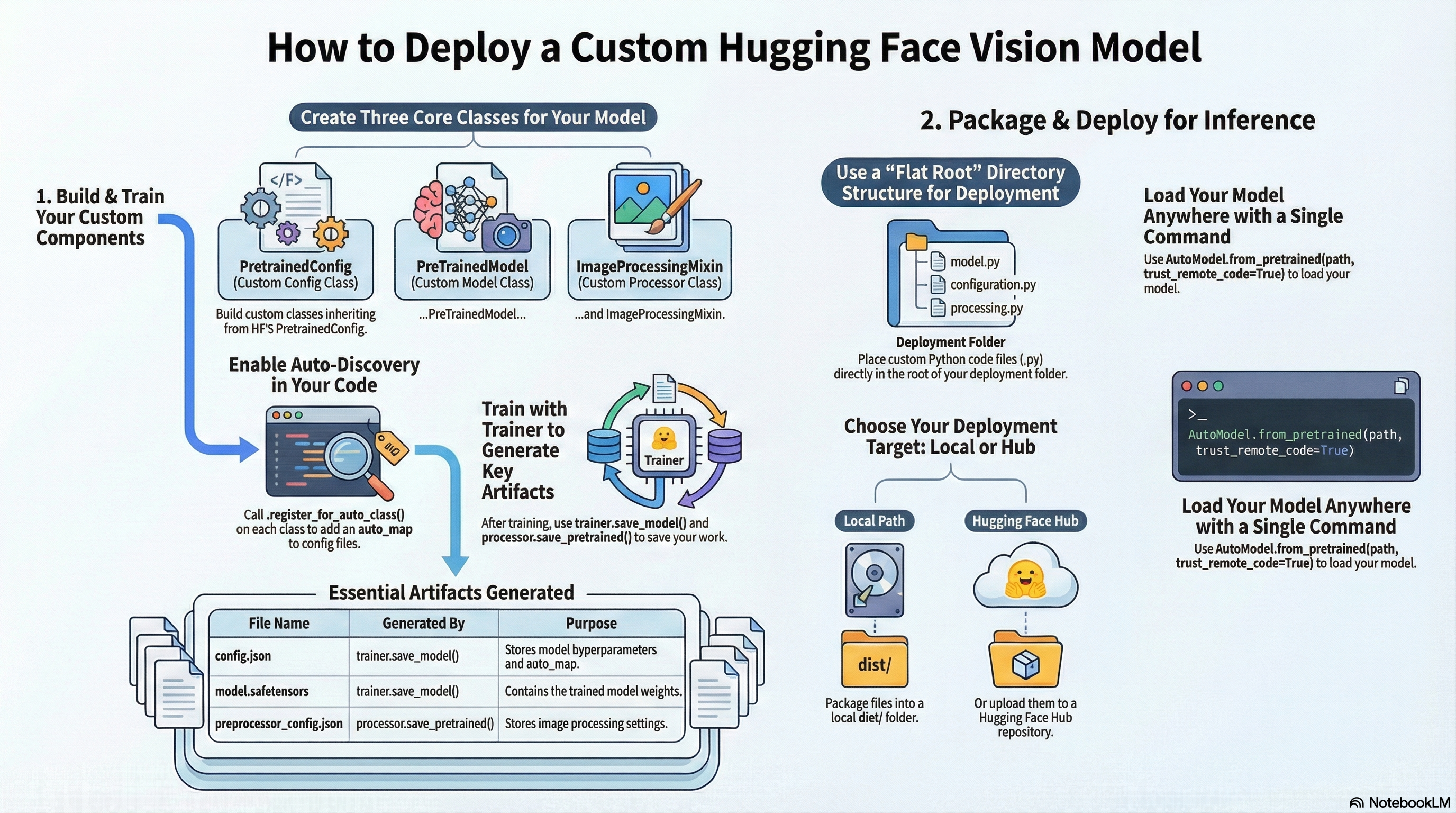 AutoClass가 config / model / processor 클래스를 자동으로 찾도록auto_map을 저장 파일에 남기는 방식(=register_for_auto_class)으로 배포하는 것임.