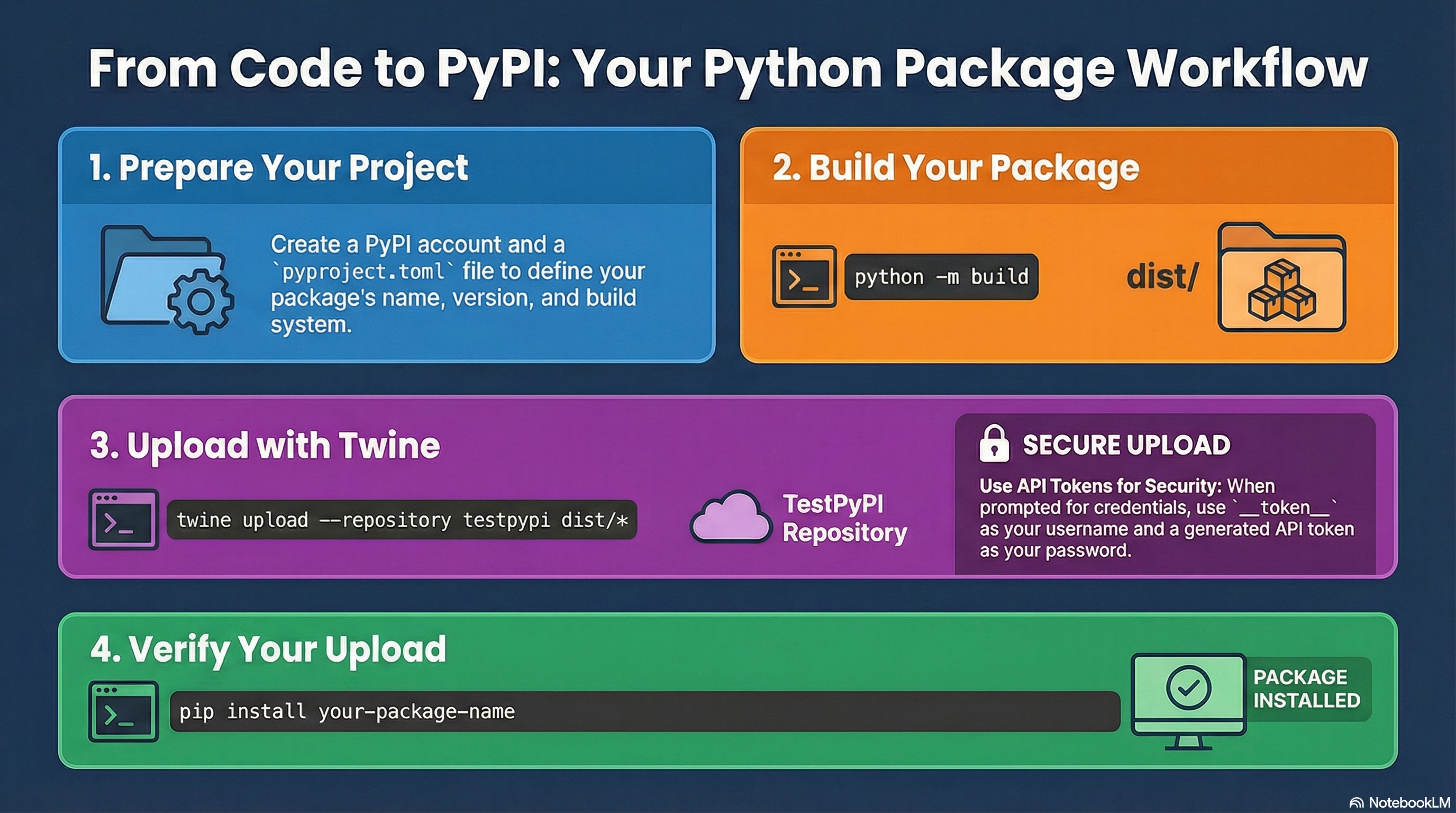 python -m build+twine upload가 표준 workflow임- TestPyPI를 통한 사전 검증 권장됨