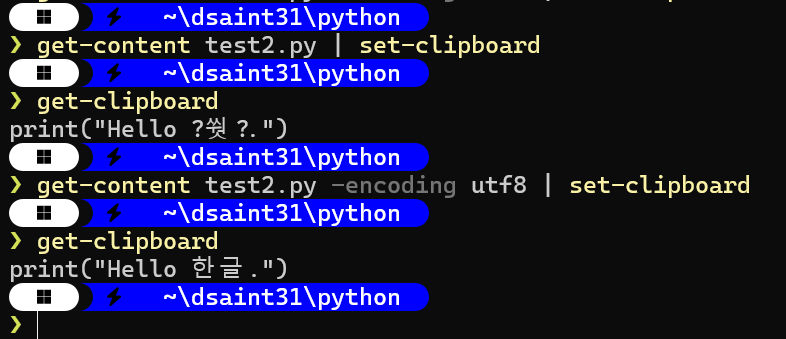 clipboard와 함께 사용: Set-Clipboard, Get-Clipboard