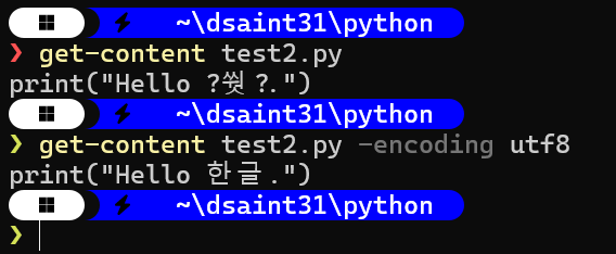 Windows PowerShell은 utf-16le를 기본 encoding으로 삼고 있기 때문에,