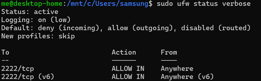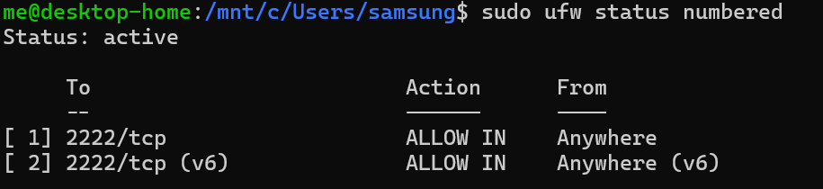 $ sudo ufw allow 2222/tcp