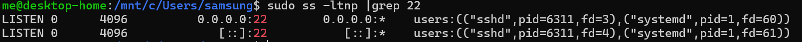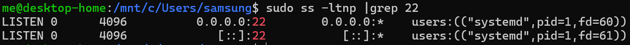 ❯ netstat -ano | findstr 2222